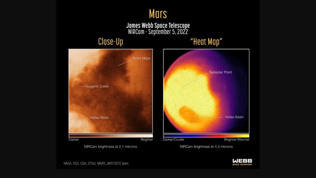 或许我们可以认为,既然韦伯空间望远镜这么强大,那它拍摄的火星应该也比哈勃望远镜清晰得多吧?那实际情况是否真是如此呢?我们来看图说话。