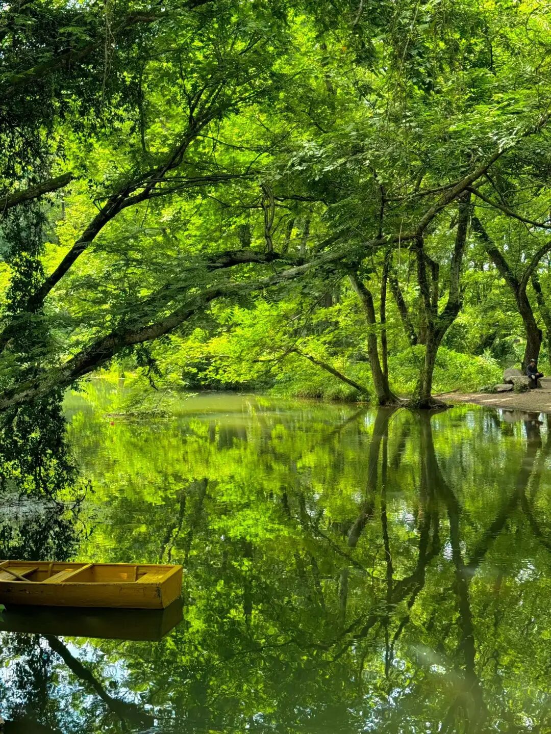 临池一侧的飞来椅,为游人提供了一个休憩的角落,可以在这里静静地欣赏池塘中的倒影,感受岁月的静好。
