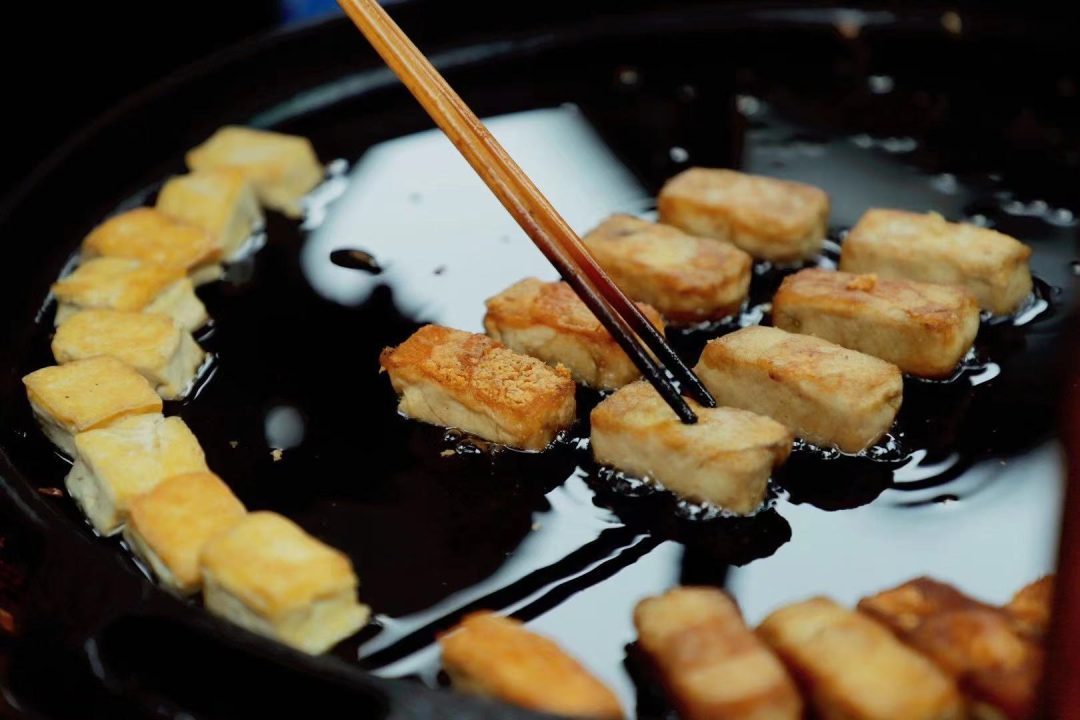煎炒后的毛豆腐外酥里嫩,搭配特制酱料,风味独特。