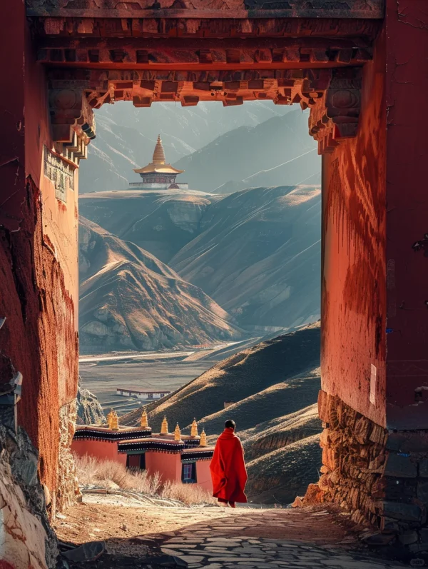 公元366年,一位名叫乐尊的僧人在行经此山时,忽然目睹金光熠熠,仿佛万千佛像显现,于是,他在此岩壁上开凿了首个洞窟,这便是莫高窟的起源。