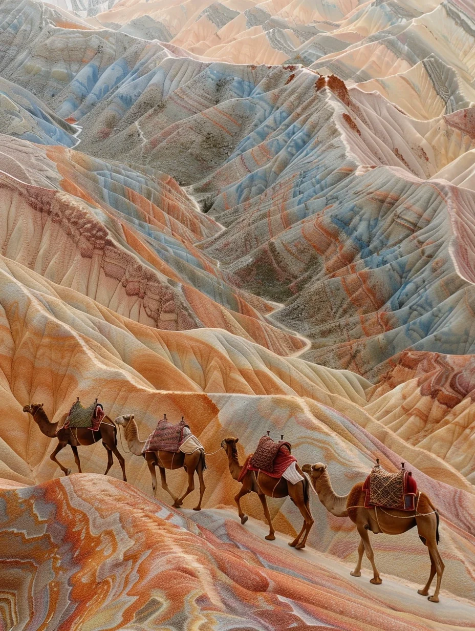 数以千计的沟壑峰谷间,那深深浅浅的明艳色彩,如同大自然的调色板,绘出了张掖独有的底色。