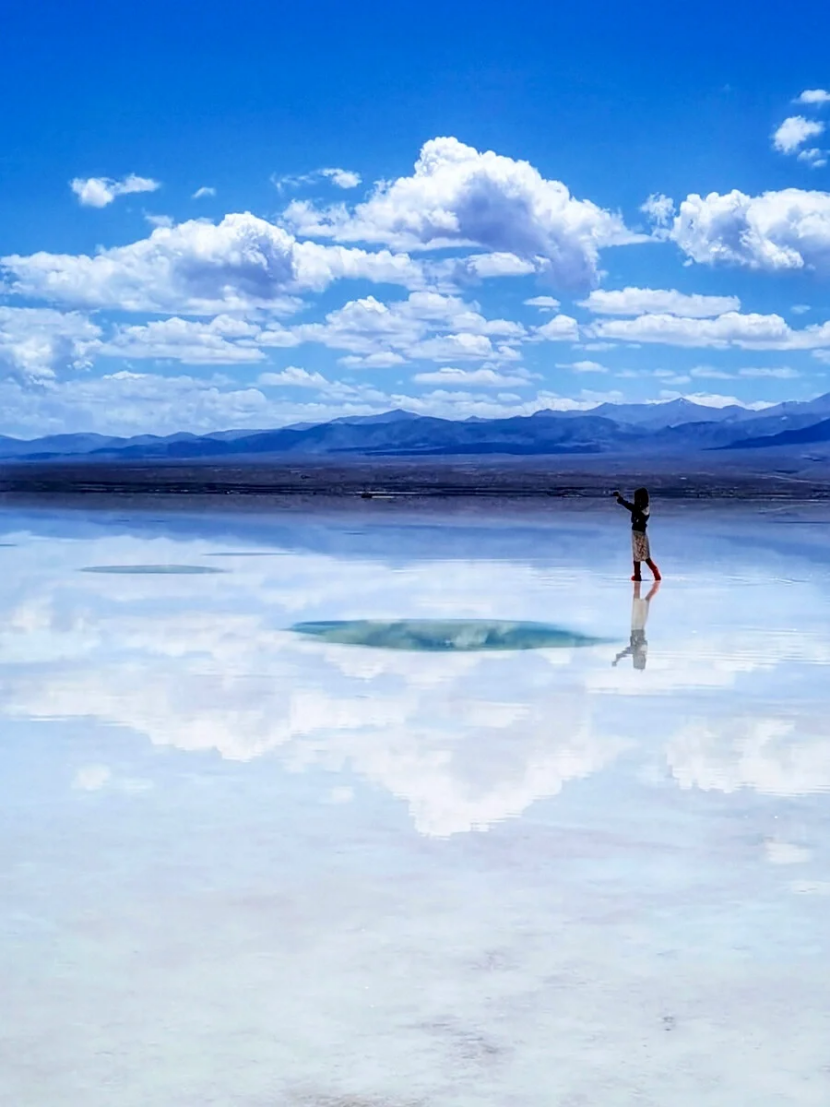 踏入这片盐的世界,漫步于湖面之上,仿佛行走于云端之间。