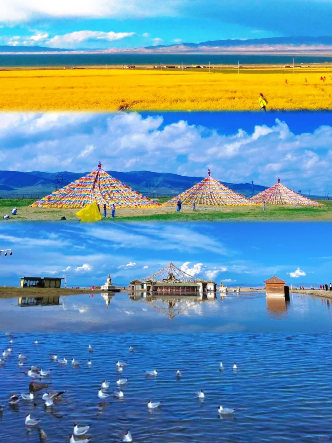 这里还有众多可与马尔代夫媲美的盐湖,有壮阔的山脉风光,绝美的草原画卷,圣洁的雪山之巅,荒芜的戈壁之景,更有神圣的寺庙静谧伫立,神秘的无人区引人探寻。