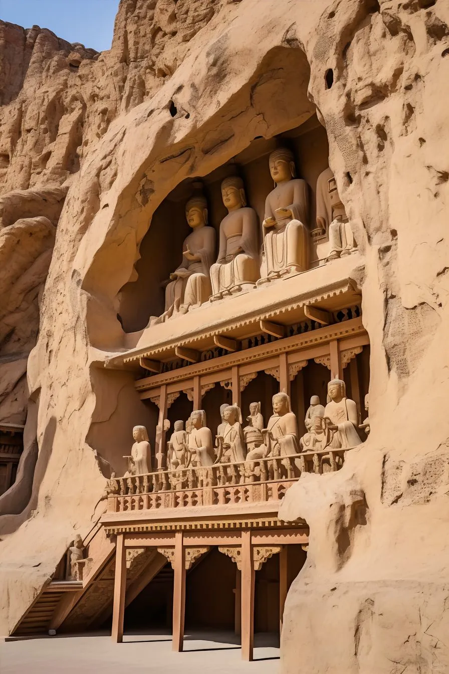 莫高窟总计拥有735个洞窟,其中492个保存得相当完好。这些洞窟内部的壁画与雕塑作品丰富多彩,令人赞叹不已。