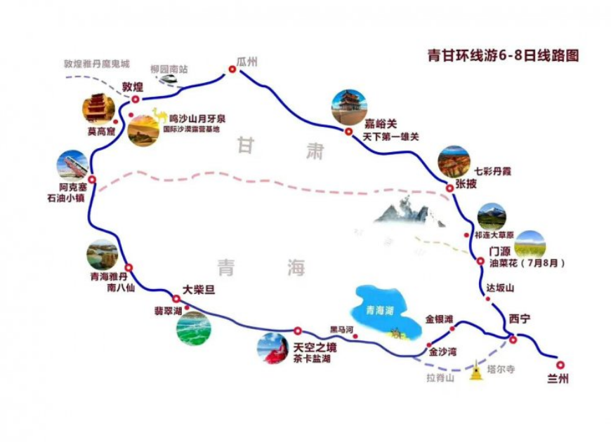 卡青海湖+茶卡盐湖+翡翠湖+塔尔寺。