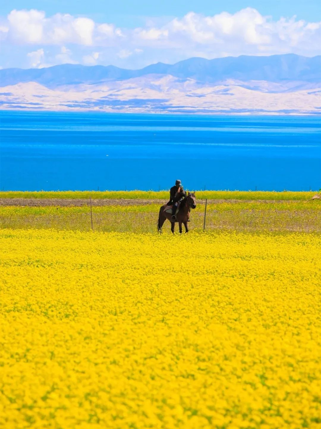 漫步湖边,徜徉于花海之中,远山与湖泊就是最辽阔的风景画卷。