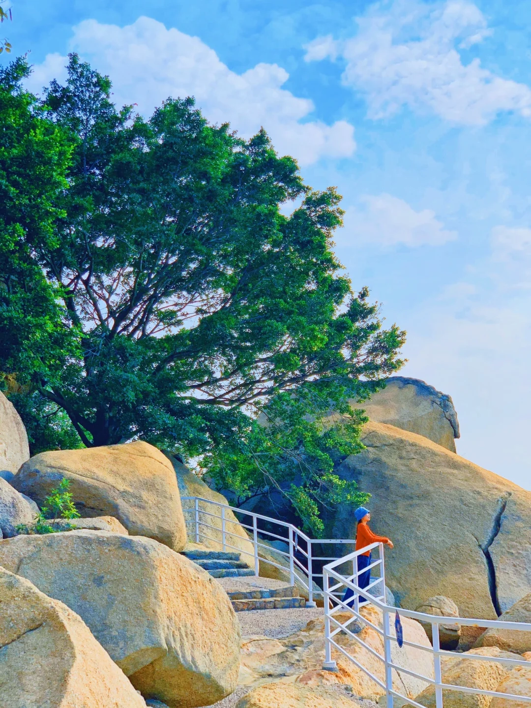 你可以脚踏松软的沙粒,沿途捡拾洁白的贝壳,走过崎岖的礁石,或许还能偶遇横行的小蟹。