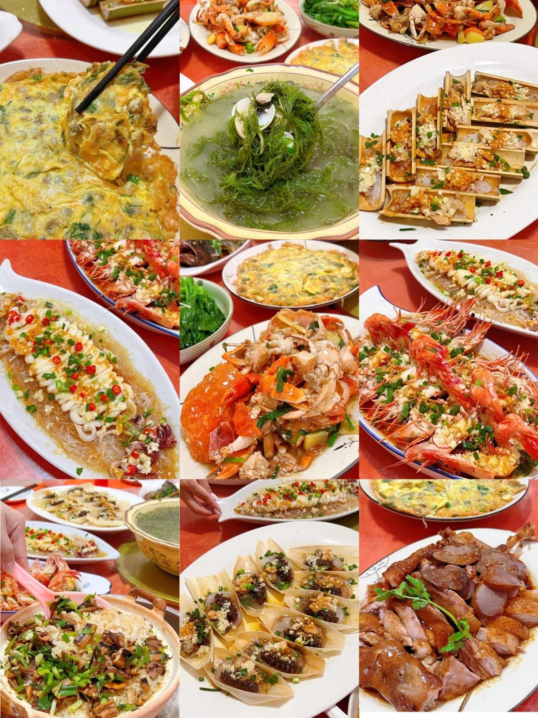 海鲜大餐上桌,虾蟹肥美,贝类鲜嫩,仿佛将整个海洋的精华都浓缩于此,让人一尝难忘,大呼过瘾!