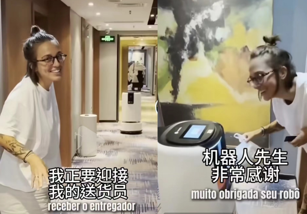 正纳闷中,没想到是可爱的机器人来送餐,简直了!