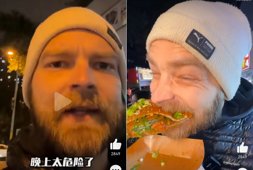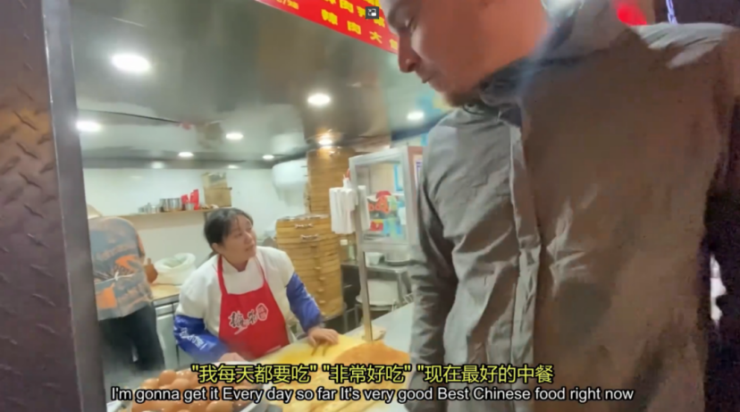 油管上近百万粉丝的澳大利亚博主,吃了一口上海的煎饼果子。