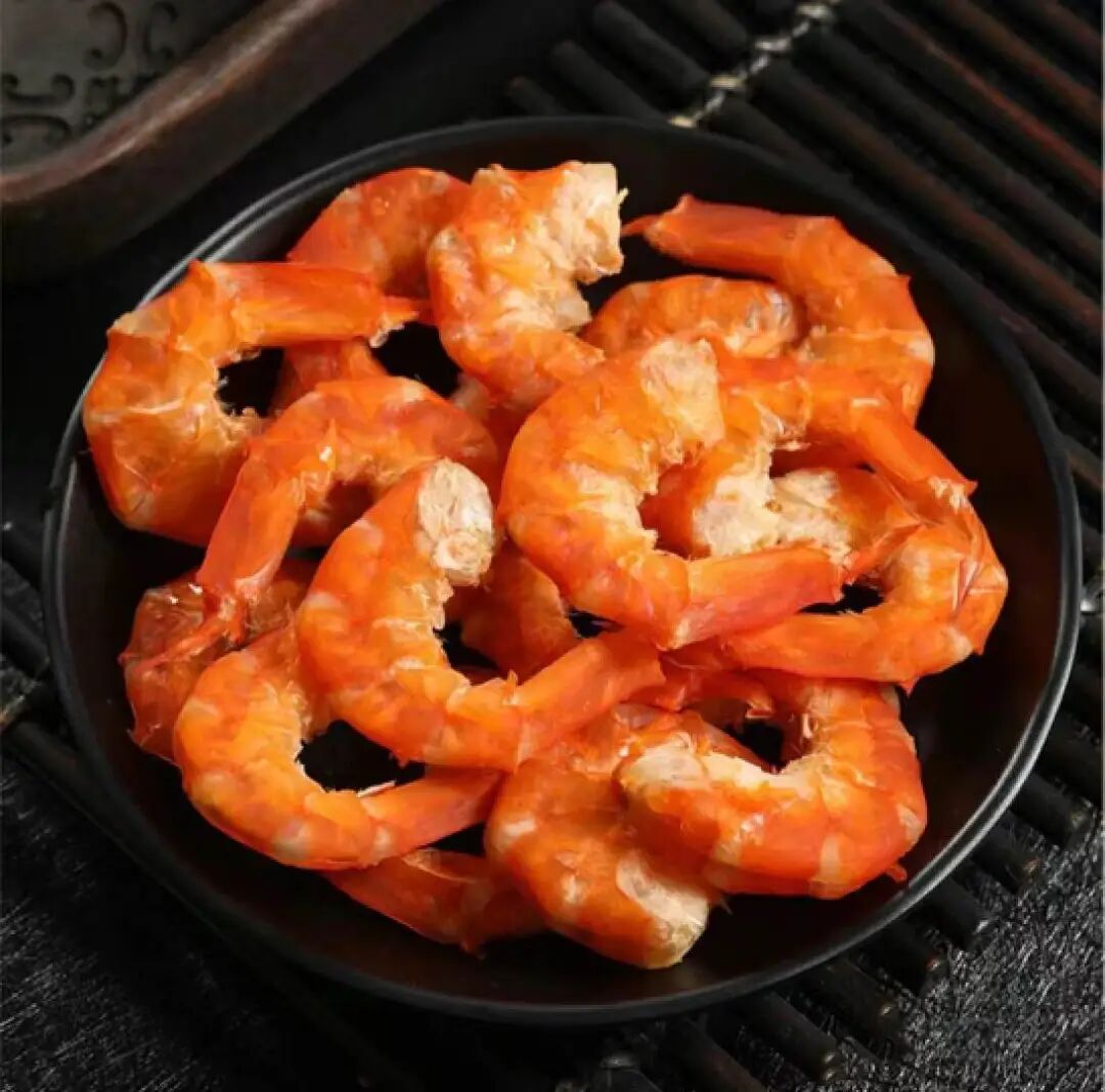 制作这种金钩海米的原材料,是长岛周边海域特有的一种小红虾或者嘎板虾。