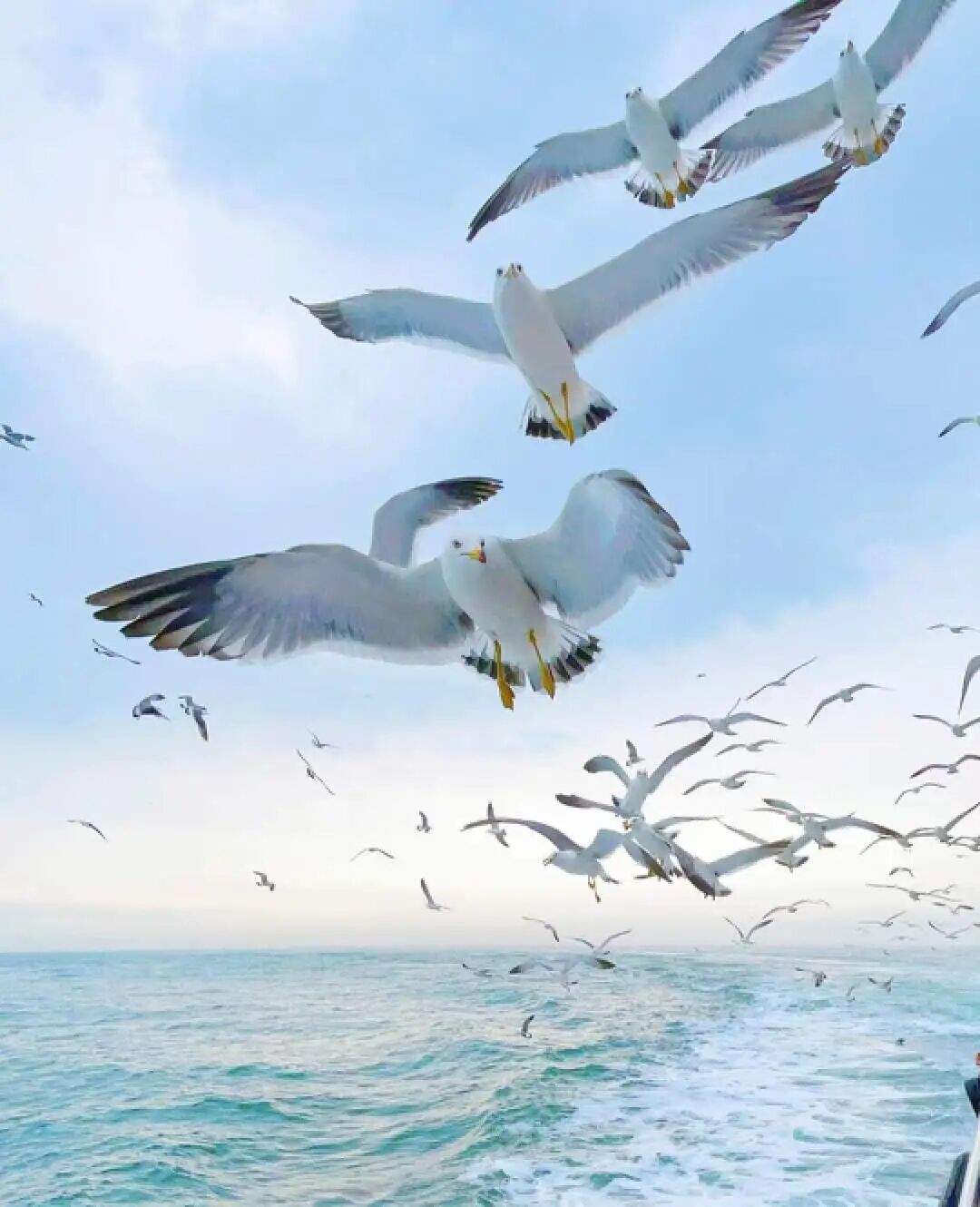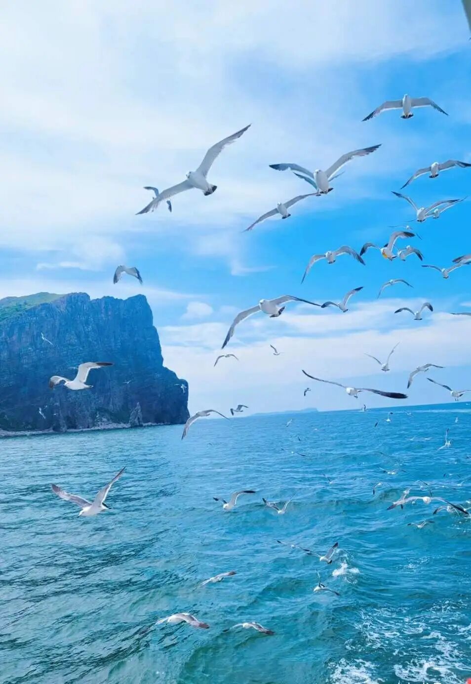 在这里,可以观赏到大量的海鸥翱翔天空的壮观景象。当游船靠近,成群的海鸥盘旋在船的四周,穿梭飞翔间,让人目不暇接,仿佛瞬间进入了海鸥王国,喜不自胜。