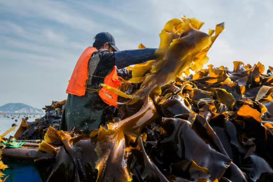长岛海带,在全国出口级海带中占比超过百分之七十,其显著特点为肉质肥厚、页面宽大和色泽诱人。