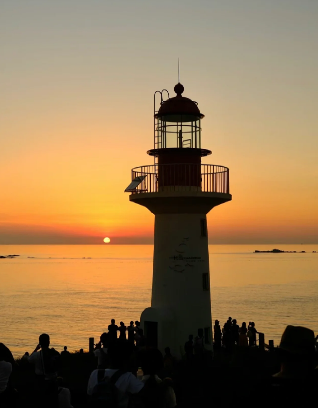 古老的灯塔与现代的灯塔交相呼应,低矮的海草房与大礼堂旧址共同勾勒出一幅历史与现实交织的画卷。