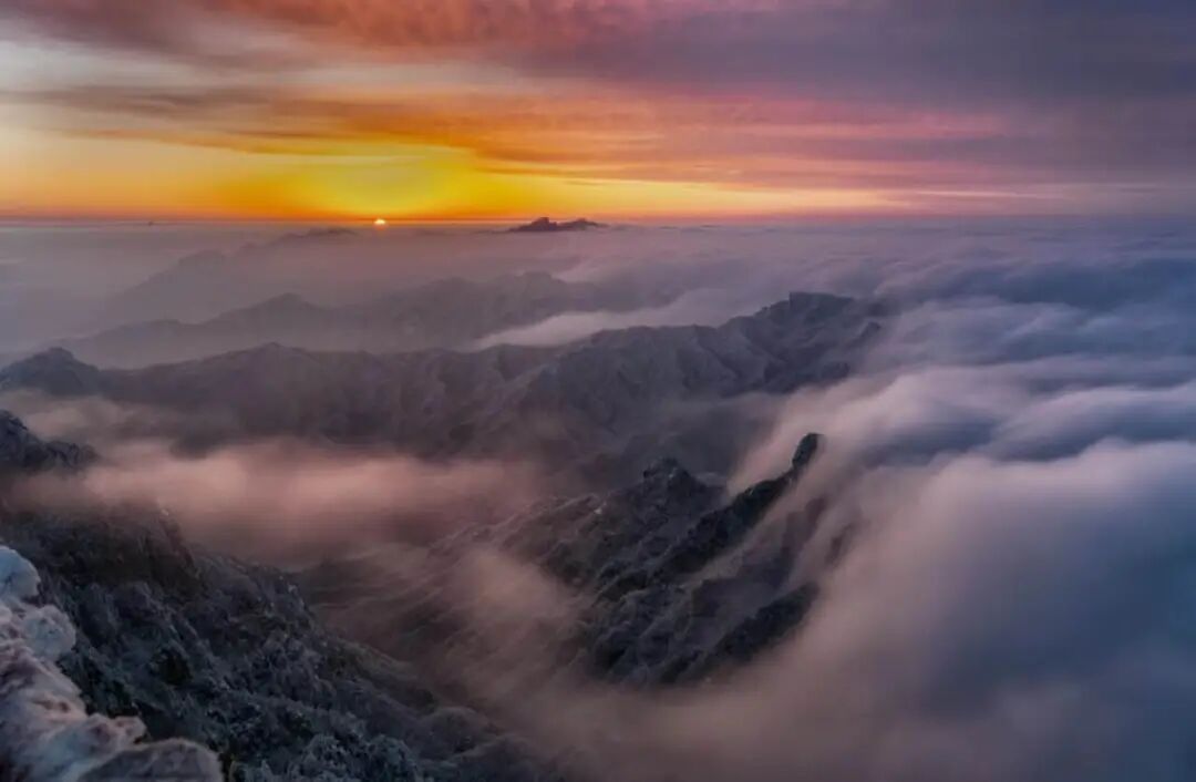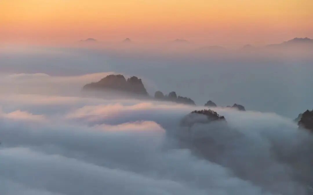 云海出现时,放眼望去,山峰隐没在云中,化为暗礁。脚下云层浮动,仿佛真是踏在烟波浩渺的水上,随浪浮沉。