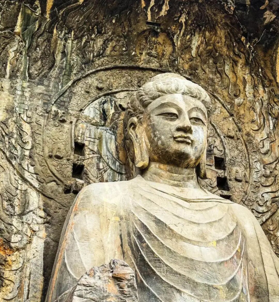 以卢舍那大佛为中心的整组群像,是龙门石窟规模最大、技艺最精湛的一组群雕,不仅展示了盛唐强大的国力,还蕴含着祥和慈悲之力。