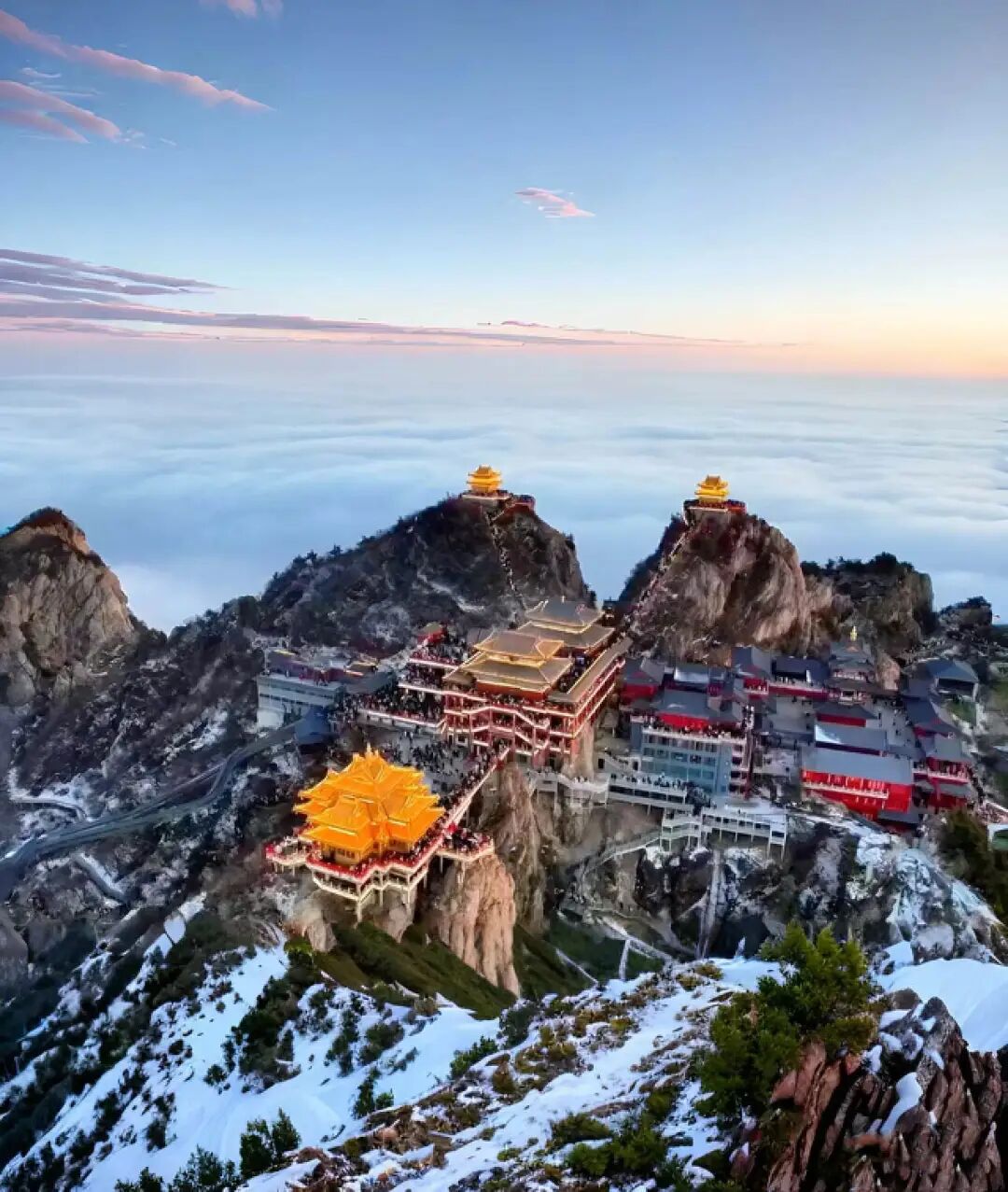 一路登顶,公主们就能见到三座金顶组成的道观群。太清观香火甚旺,是中原道教朝拜圣地。