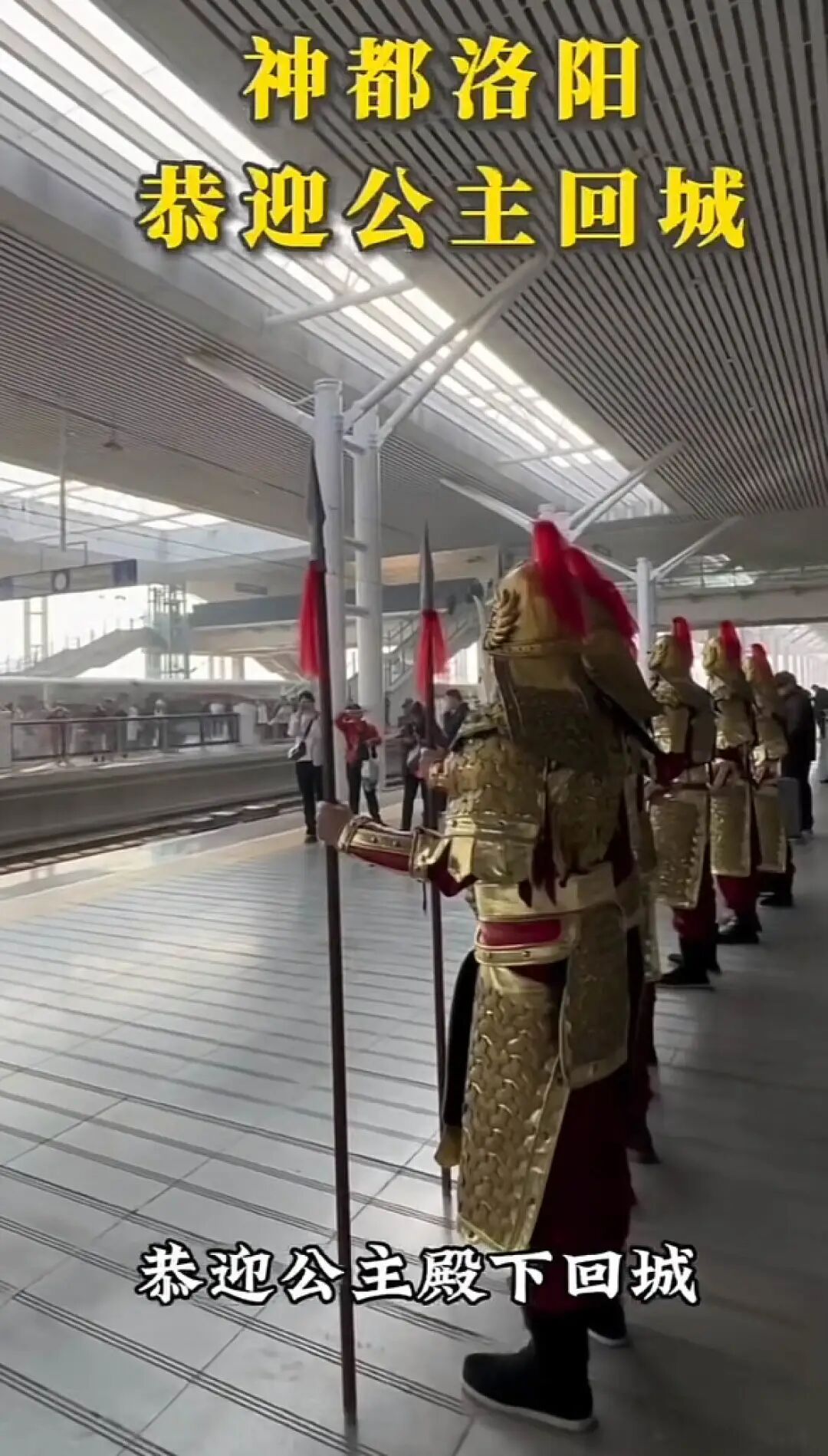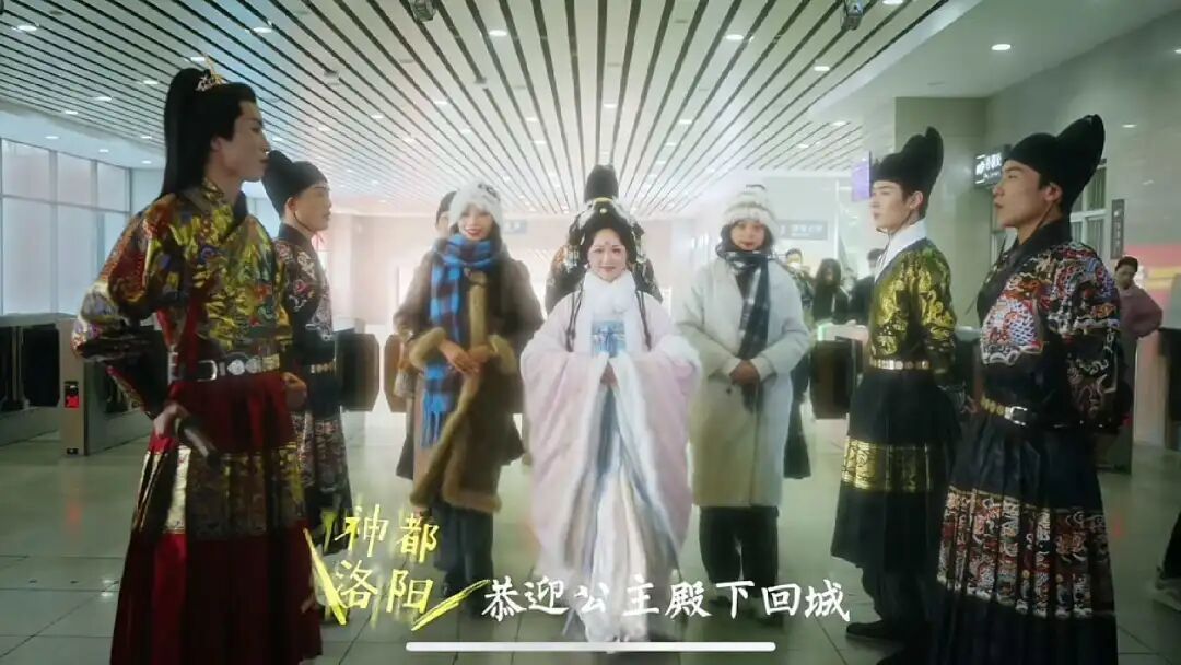 洛阳文旅派出古装美男在高铁站接驾。