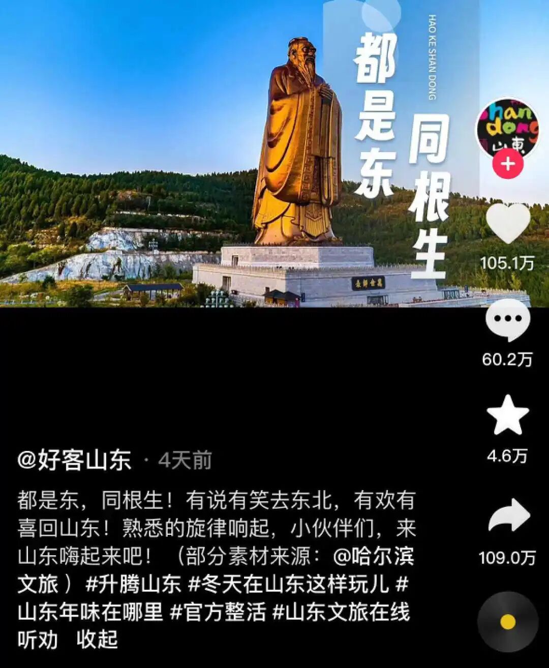 山东文旅推出“我姓东,大山东”的土味洗脑视频,跟尔滨“遥相呼麦”。
