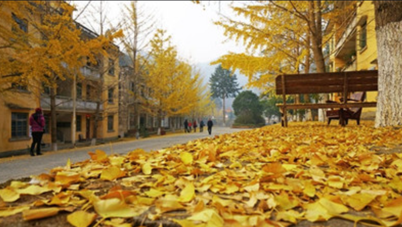 走在黄金大道上,道路两旁是一幢幢古朴的小楼,一树树银杏,随着秋风轻轻舞动。