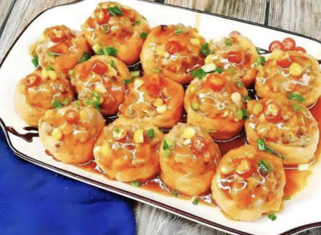 油豆腐填入剁碎的猪肉、香菇、虾仁等馅料,高汤炖煮。口感嫩滑,一试难忘。