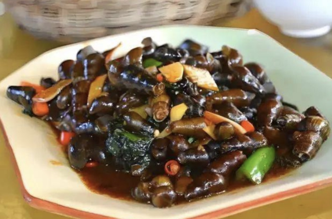 采用山间溪水中生长的小螺蛳,加入青椒、紫苏、蒜茸爆炒,香气扑鼻,鲜美无比。