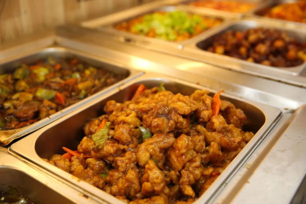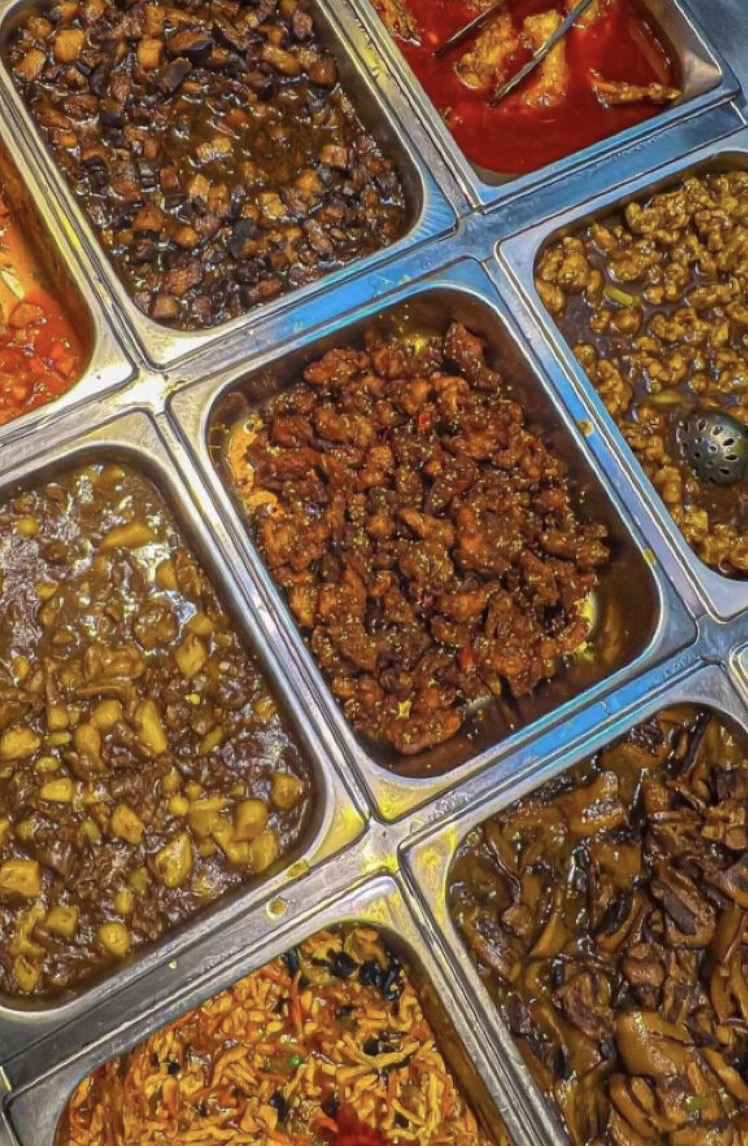 大部分盒饭店,价格在10-20块钱之间,一荤两素、两荤两素……吃到顶配也就20多块钱,绝对能让你空着肚子进去,胀着肚子出来。