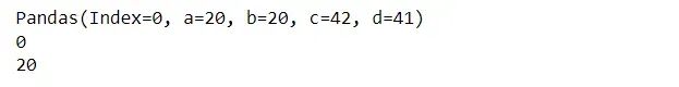 for row in df[:1].itertuples(): print(row) ## accessing the complete row - index following by columns print(row.Index) ## accessing the index of the row print(row.a) ## accessing the value of column 'a'