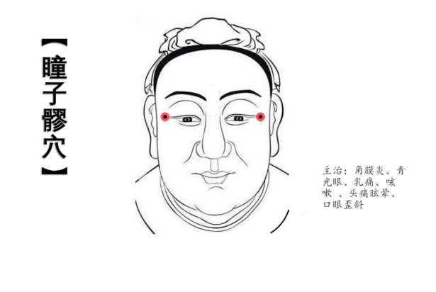瞳子髎——眼睛外侧1厘米处,眶骨外的凹陷中