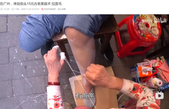 图片源自B站UP主@施利TV《在广州,体验街头15元古老美容术 拉面毛》