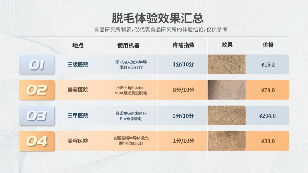 家人们,废话不多说,小伙伴刚刚发回的美容院、医院一线脱毛体验报告,小Yoo给大家放在这儿了: