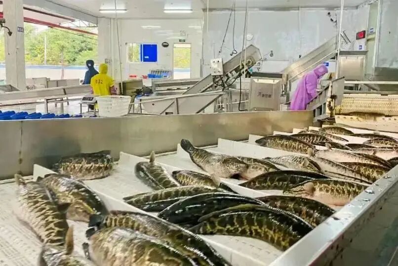 图为肇庆恒兴水产科技有限公司预包装鱼生产车间