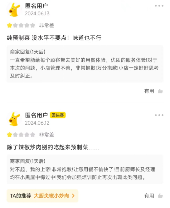 PS:小Yoo有几招尽量避免预制外卖的方法,一是找有实体门店的,二是不要点太过便宜的,三是最好不要点小碗菜,四是少点不熟的店,最后多看看差评。