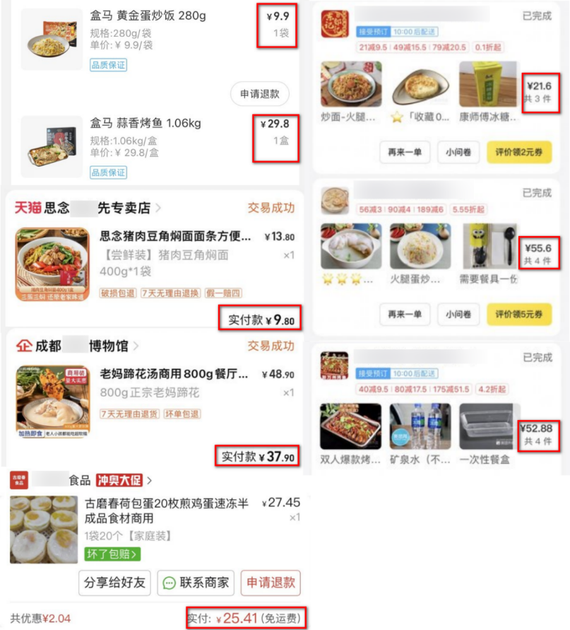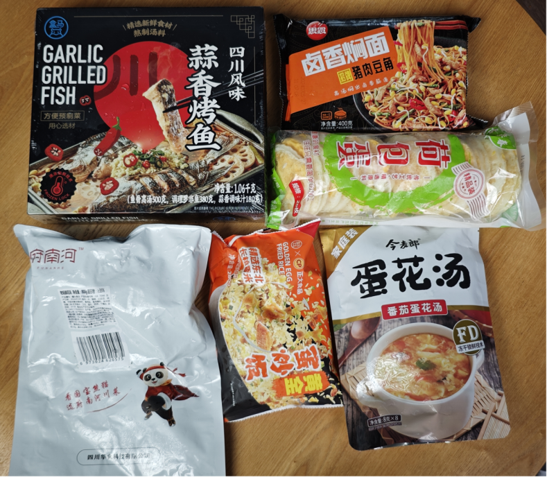 为了真正地了解预制菜,小Yoo决定斥“巨资”——112.81元,分别从盒马、淘宝、拼多多买了预制的蛋炒饭、蒜香烤鱼、豆角焖面、老妈蹄花汤和荷包蛋。