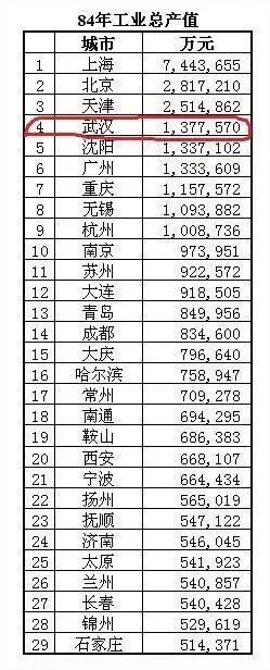 说起来,武汉的发展真的让人意难平!曾经它驾乎津门,直追沪上,在国内城市前面带有“大”的只有上海和武汉,建国初期武汉就是直辖市(不过几年后被撤销),上世纪80年代,工业总值更是排名全国第四。