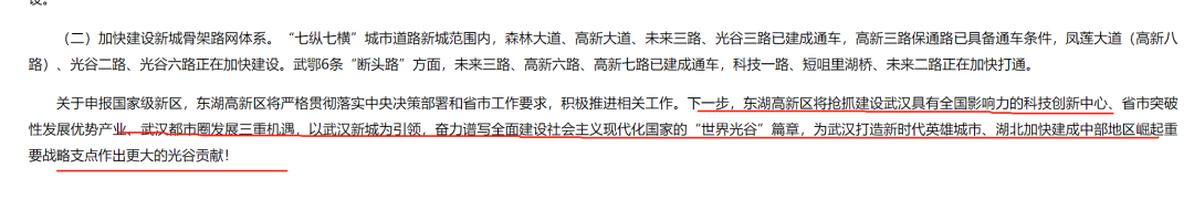 可见在省市两级的整体部署中,并未打算以光谷为主体申报国家级新区。