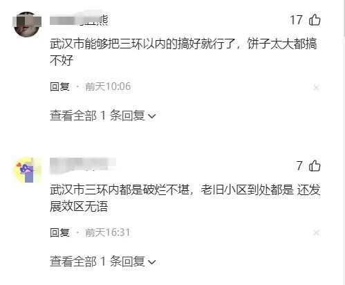 其中就有不少网友认为不应该画大饼,应该把老城区搞好。还有网友说武汉市三环内都是破烂不堪,老旧小区到处都是,不应该发展郊区。