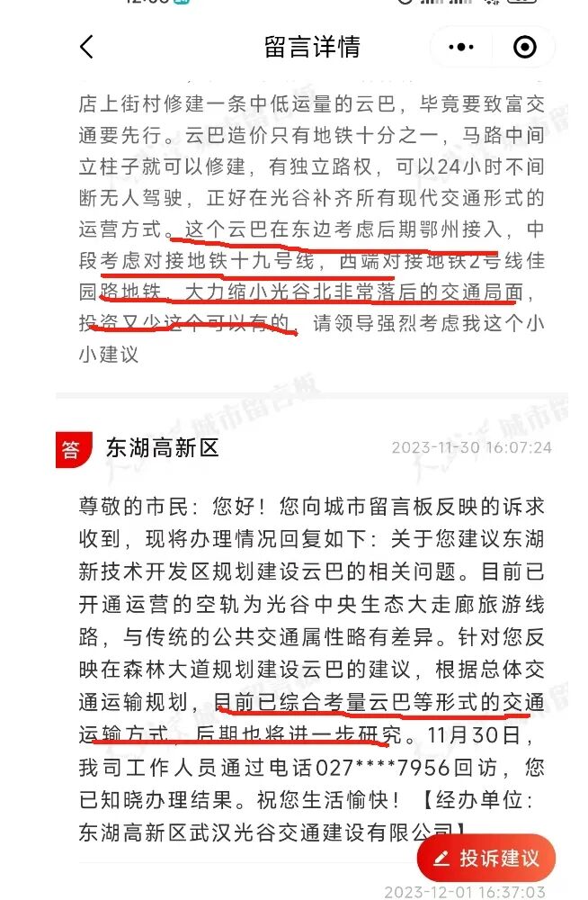 至于其他区,目前是没有关于云巴的相关规划的。之前有网友建议光谷在森林大道沿线建云巴,一直延伸到葛店上街,但是光谷回复也是后期将进一步研究。