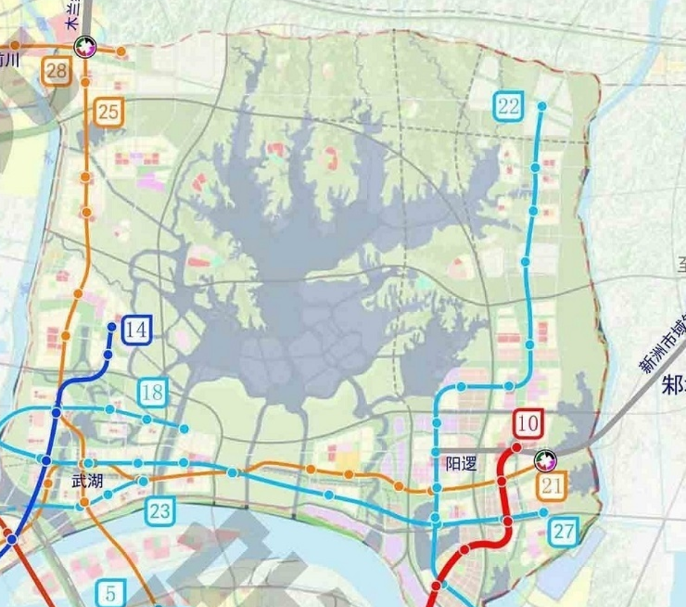新洲就比较惨,阳逻分出去后,新洲将成为唯一一个没有地铁的区。按照规划,未来有且仅有双柳会有1条22号线,通往邾城的轨道交通会以市域铁路行驶,不属于地铁。