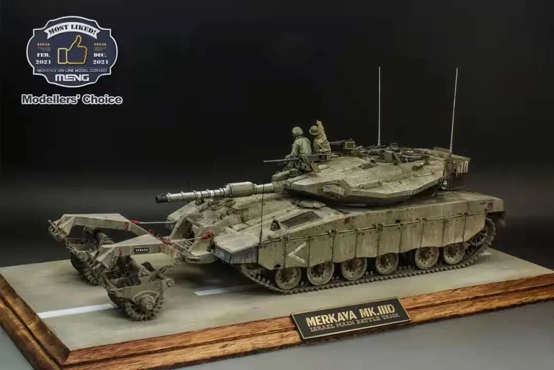 难怪小编每次见到好看的以色列车都会超级开心,今天分享的是圈姐的梅卡瓦,这一台的细节和旧化都十分完美,配上两个兵人后,整体感觉更生动了!这件作品同时也获得了2021年meng年赛的最佳人气奖,实在是太喜欢了!