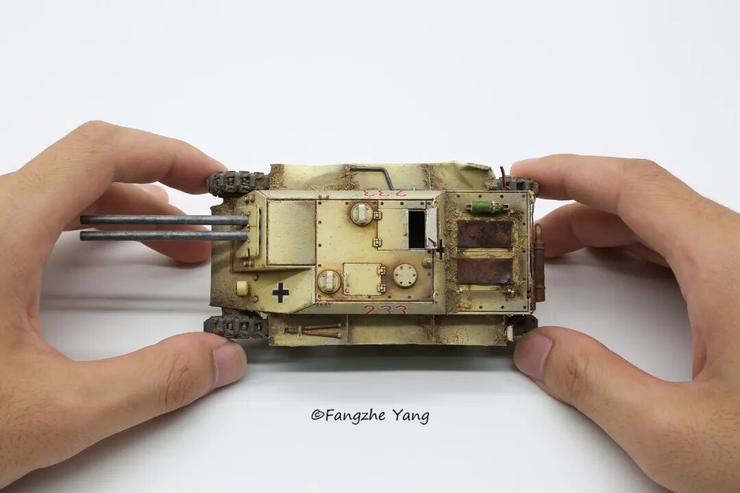回到作品!好喜欢,这德国黄表现得好舒服,脏兮兮的效果表现得克制又美好!没有灰突突的也没有特别硬,小编尤其爱这个履带和和炮管的旧化效果!相信大家一定会喜欢~