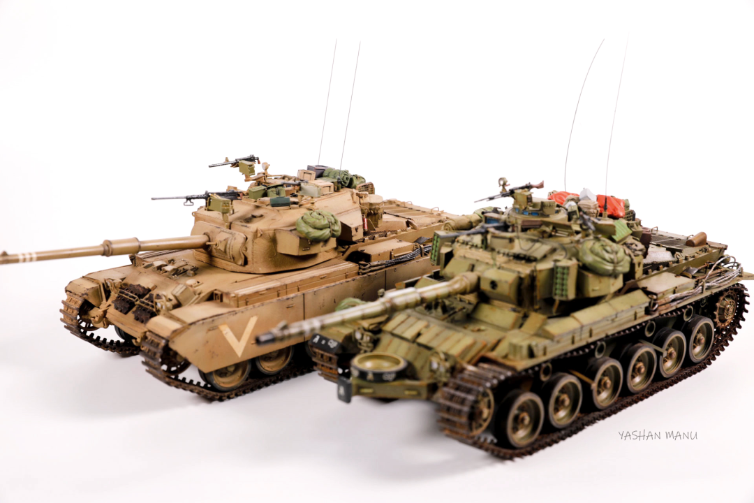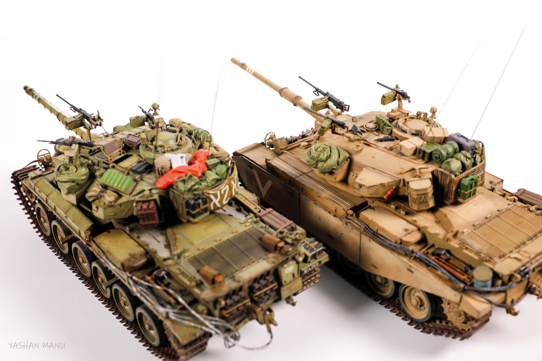 尤其是肖特卡尔的坦克战,不得不说以军装备还挺对我的胃口,刚好那个时候入坑不久,恰巧AH也出了这个产品,第一时间便入了一盒。虽然没太多基础,也决心去把这一盒做得稍微好一点。所以费了很大心思将其完成,用了很多技法,但是手太生效果也很一般。(跟主角合影的A型就是先前肖特卡尔作品)