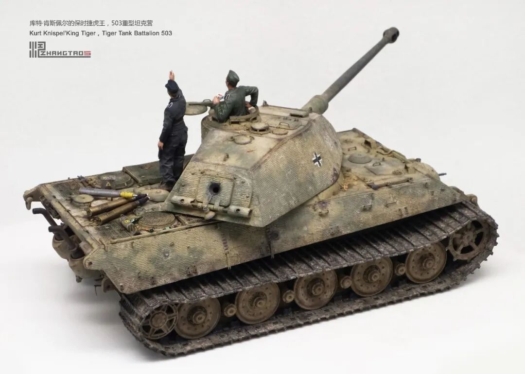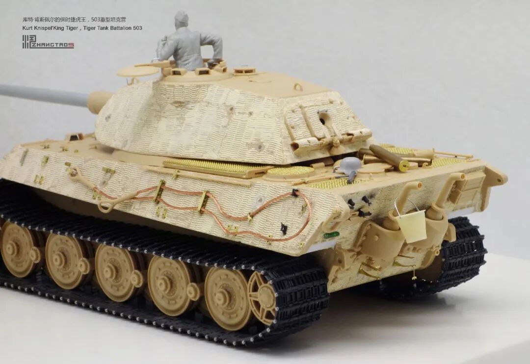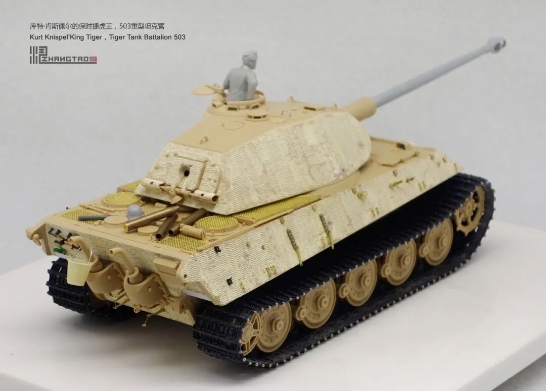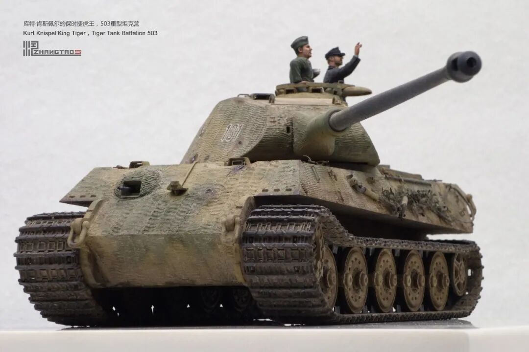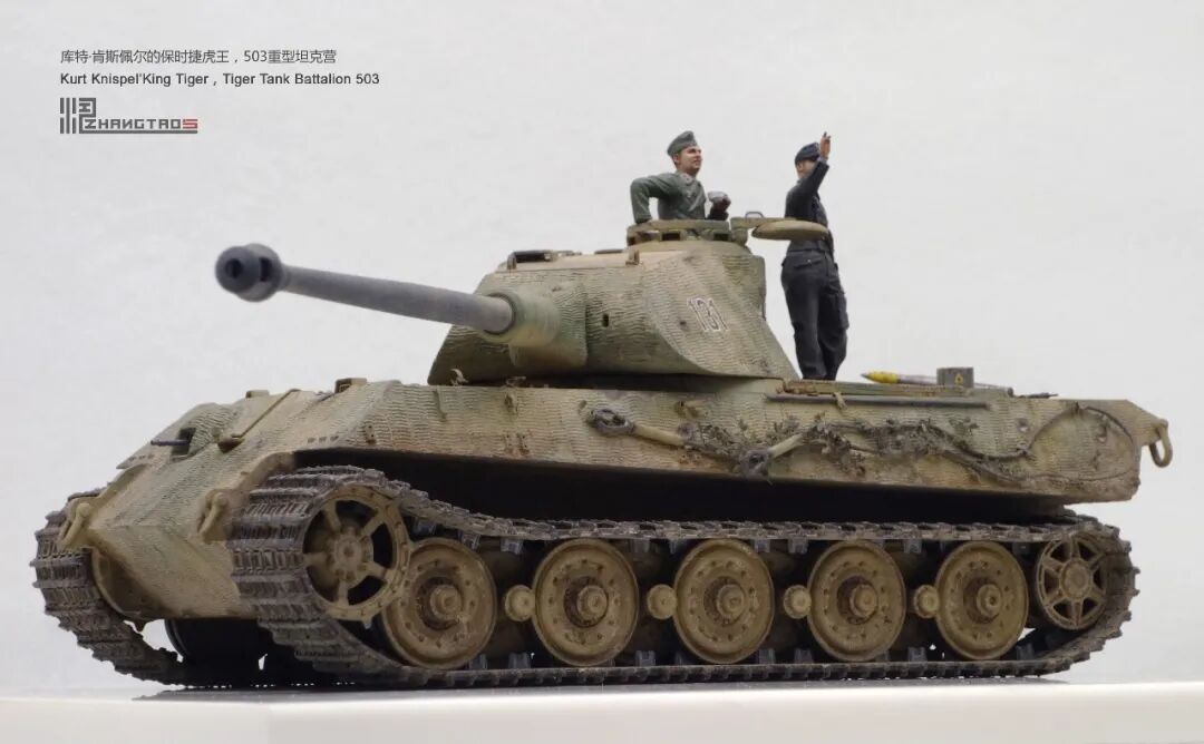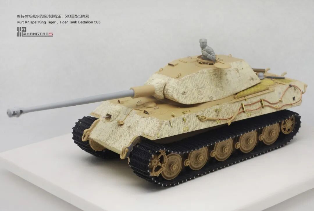 503营拥有众多狠角色,其中包括富有争议的最强炮手库特·肯斯佩尔,据说他的战绩可能超过195辆坦克,不过大部分成绩是作为炮手取得的,战争结束前这位王牌葬身于匈牙利苏军坦克的围殴中。这辆保时捷虎王就是他的131号,当时他还是炮手。虽然不算考证派,但也尽量找了503营西线时期相关资料,无奈关于这个王牌炮手的资料实在有限,只能“合理”制作了。
