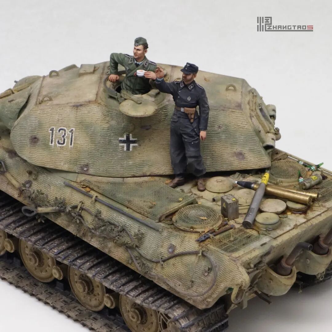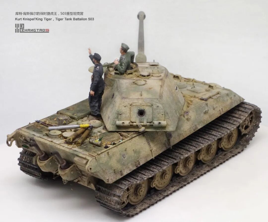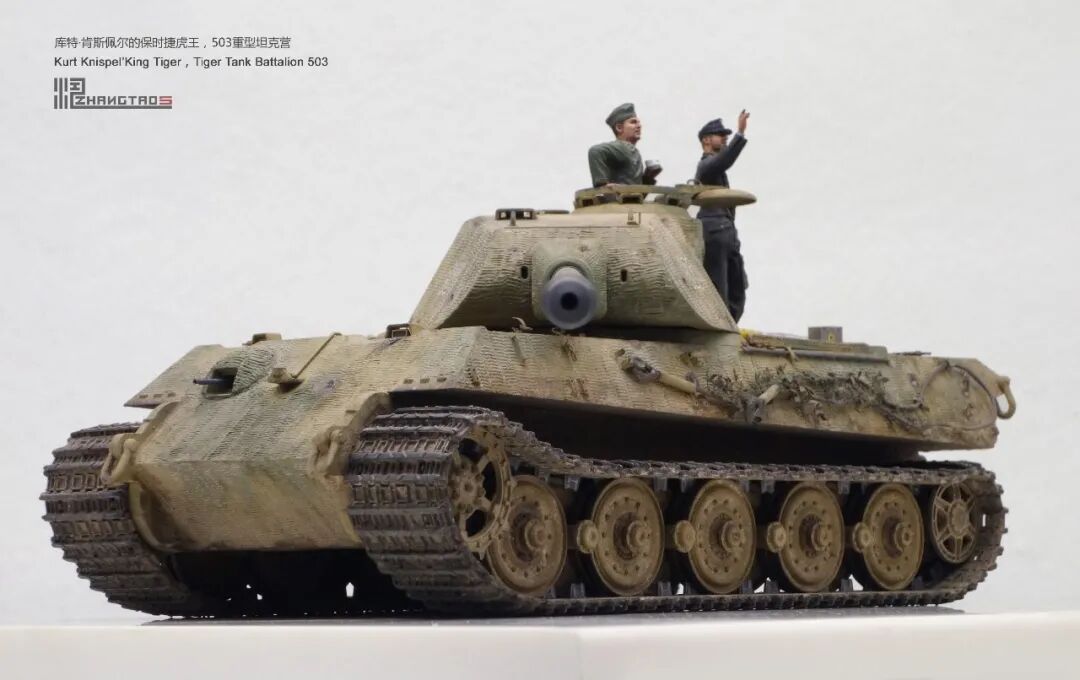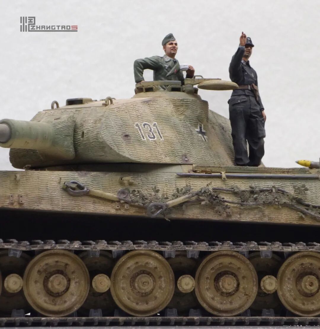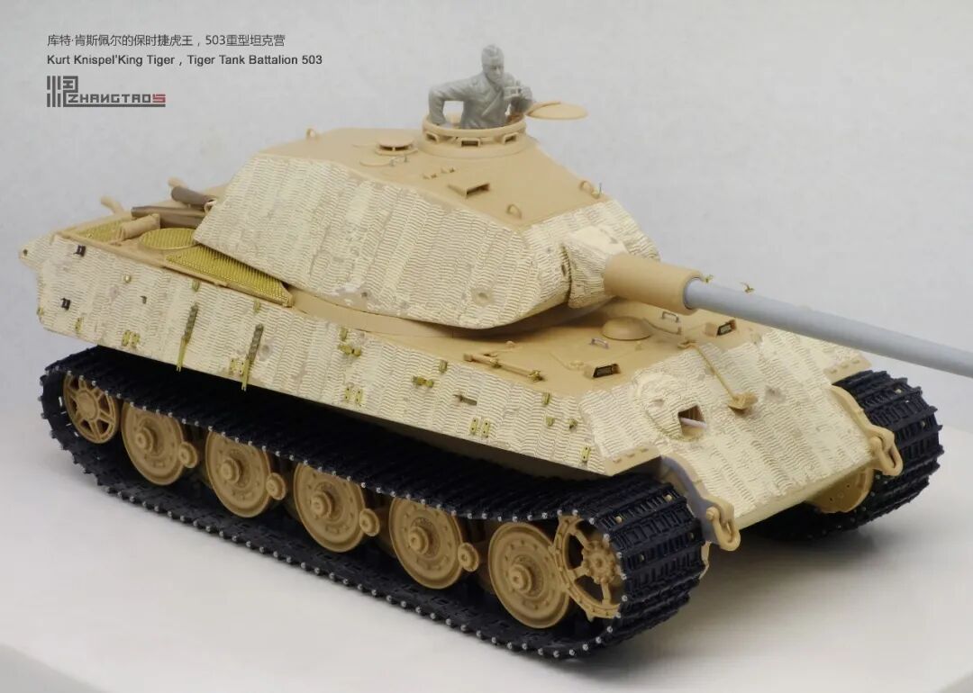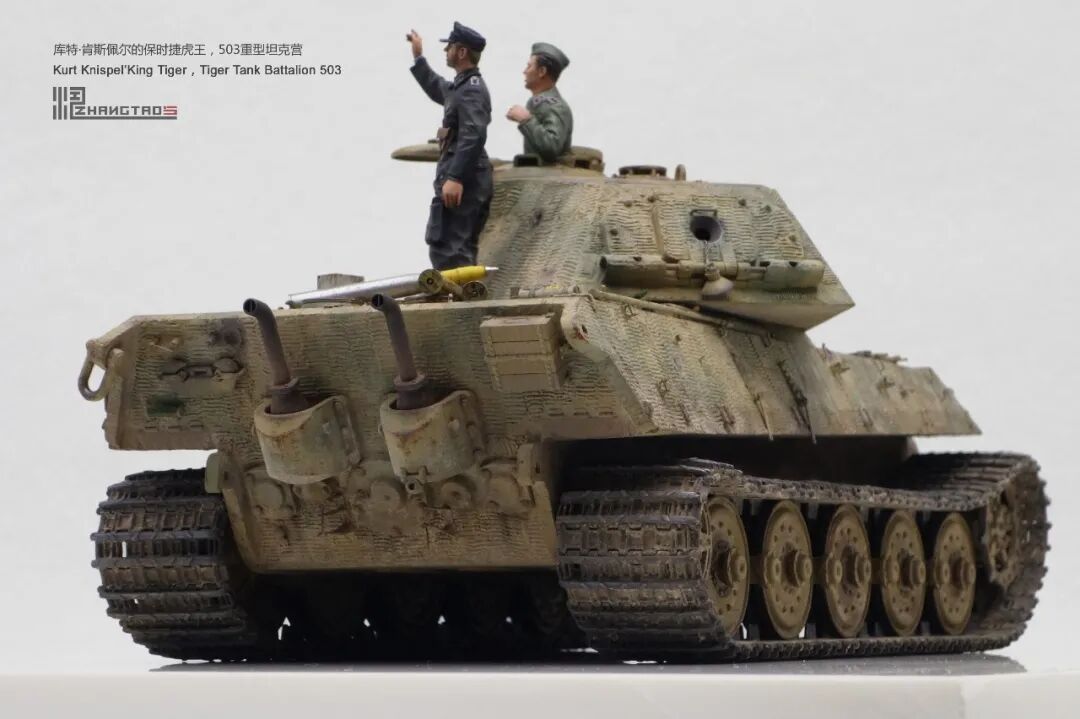 503营拥有众多狠角色,其中包括富有争议的最强炮手库特·肯斯佩尔,据说他的战绩可能超过195辆坦克,不过大部分成绩是作为炮手取得的,战争结束前这位王牌葬身于匈牙利苏军坦克的围殴中。这辆保时捷虎王就是他的131号,当时他还是炮手。虽然不算考证派,但也尽量找了503营西线时期相关资料,无奈关于这个王牌炮手的资料实在有限,只能“合理”制作了。