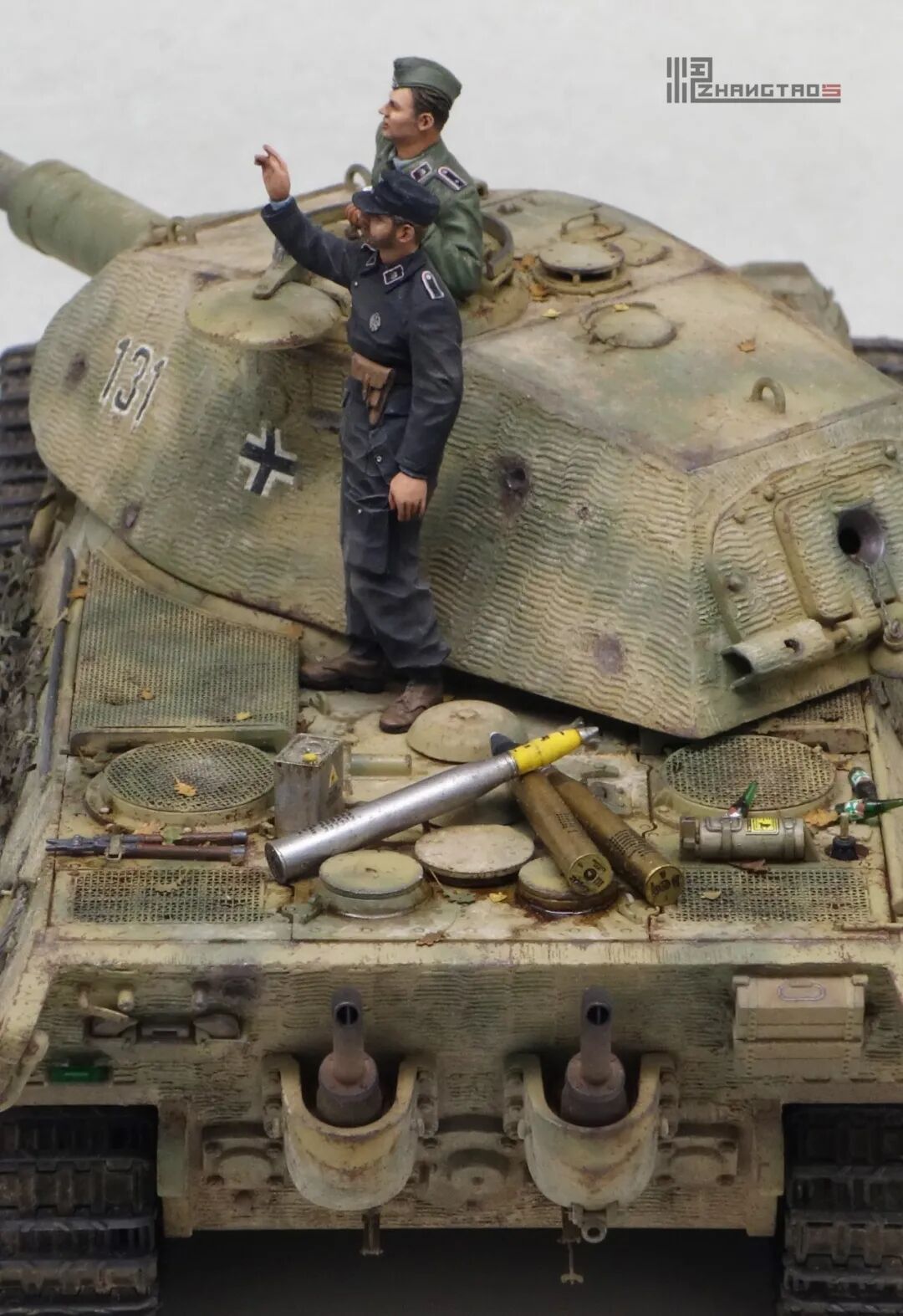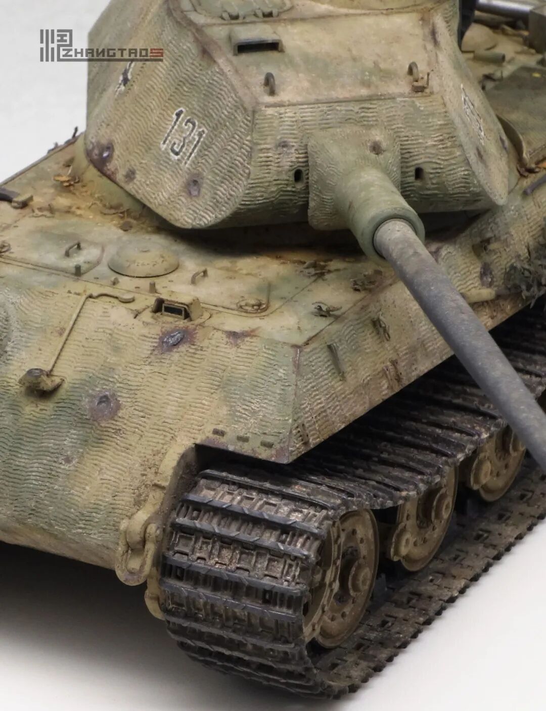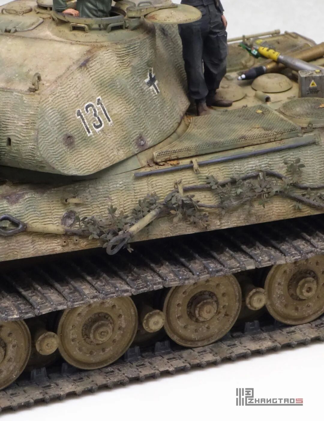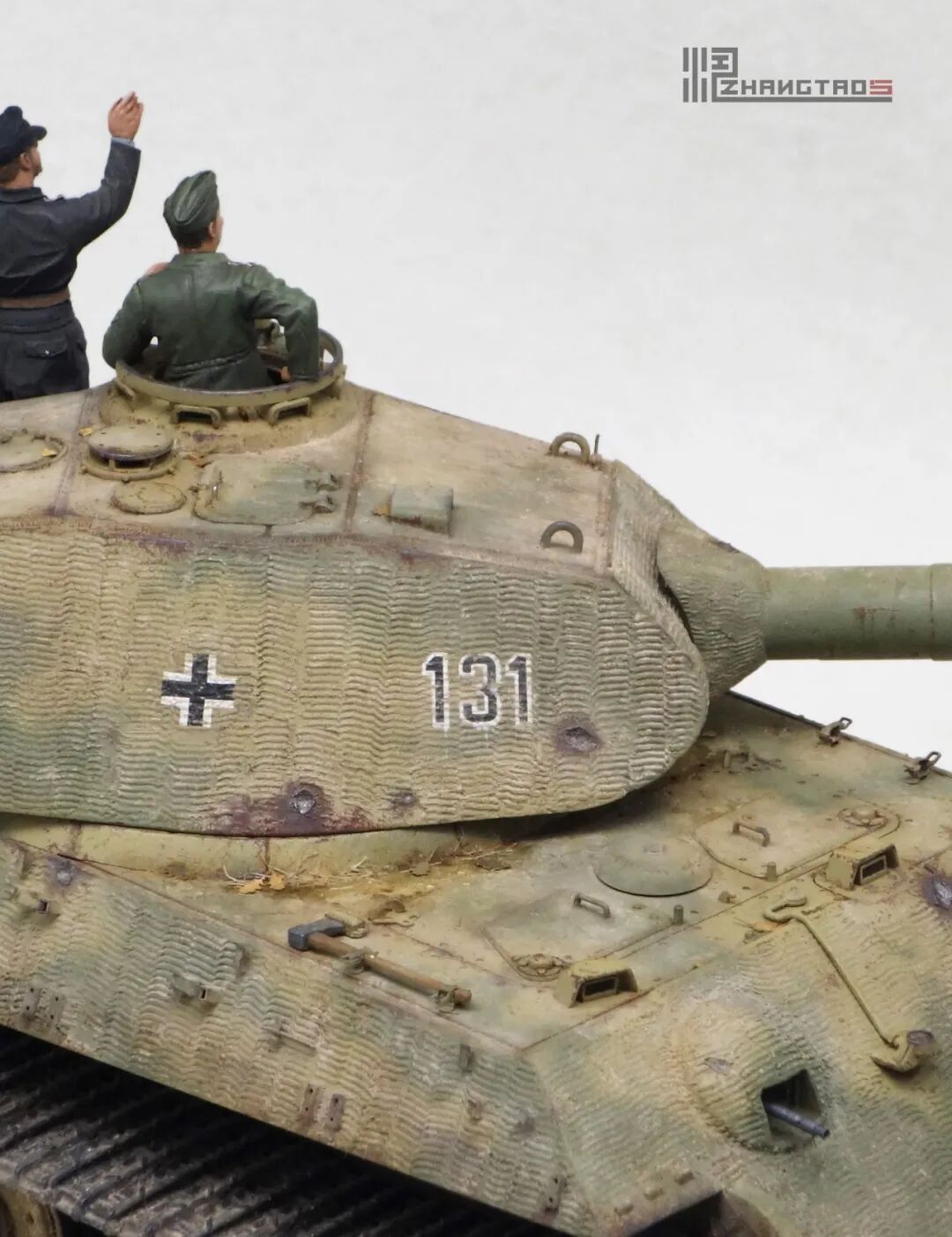 503营拥有众多狠角色,其中包括富有争议的最强炮手库特·肯斯佩尔,据说他的战绩可能超过195辆坦克,不过大部分成绩是作为炮手取得的,战争结束前这位王牌葬身于匈牙利苏军坦克的围殴中。这辆保时捷虎王就是他的131号,当时他还是炮手。虽然不算考证派,但也尽量找了503营西线时期相关资料,无奈关于这个王牌炮手的资料实在有限,只能“合理”制作了。