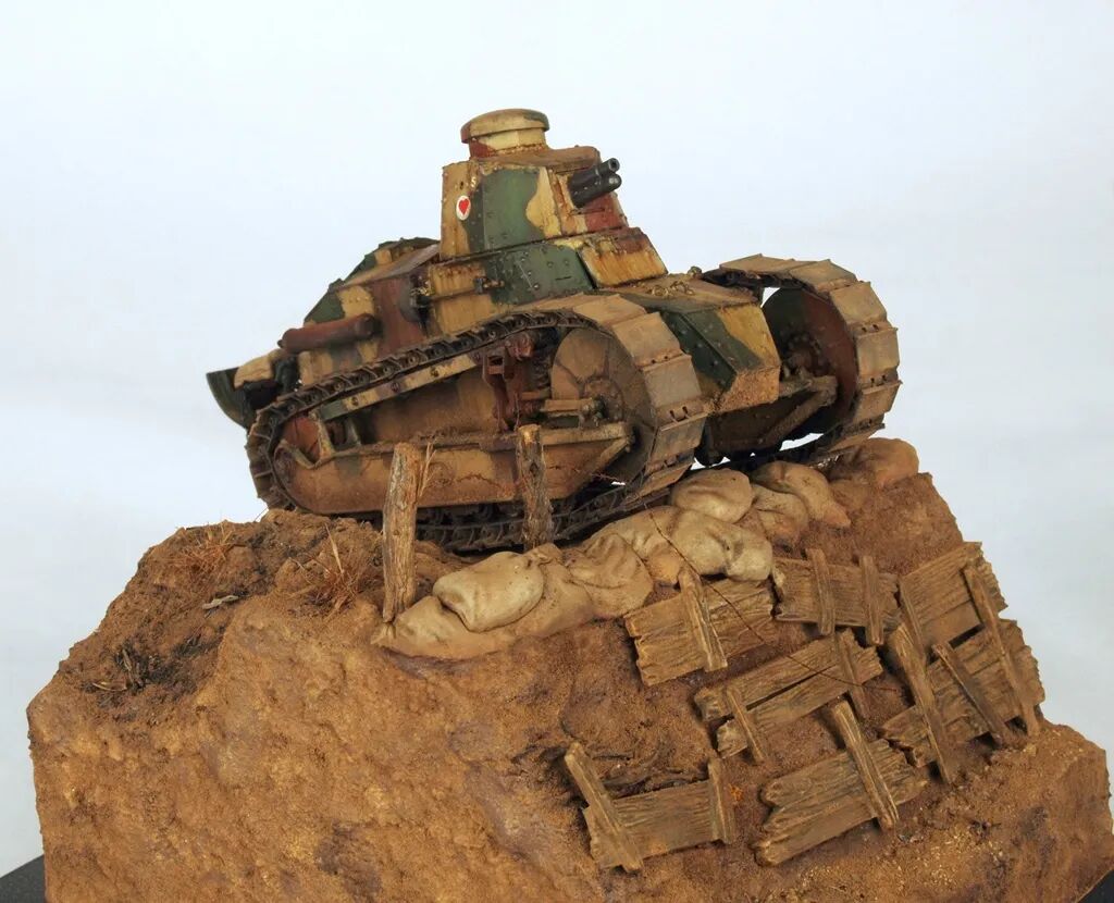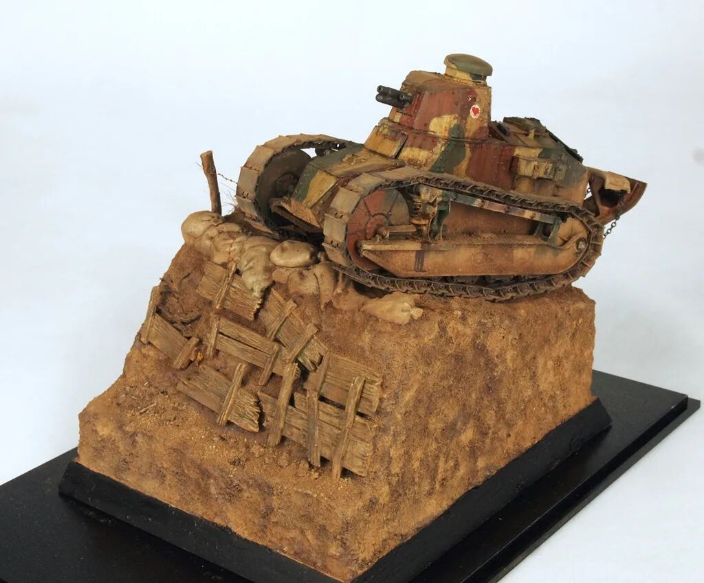 今天这件作品来自一位新朋友!实事求是的说,打眼一看,照片拍的有些差,感觉作品糊作一团。但小编仔细看了下,其实作品真的还是很不错的,战车的旧化处理还是很给力的,该有效果一点也不少甚至还有点牛!可能是因为所有元素的色调都差不多,加上拍照技术不太足,导致照片看起来没有什么层次感。所以还是分享给大家,大家一起来发现每一件作品的美!一起来感受每一位作者对自己作品倾注的感情~