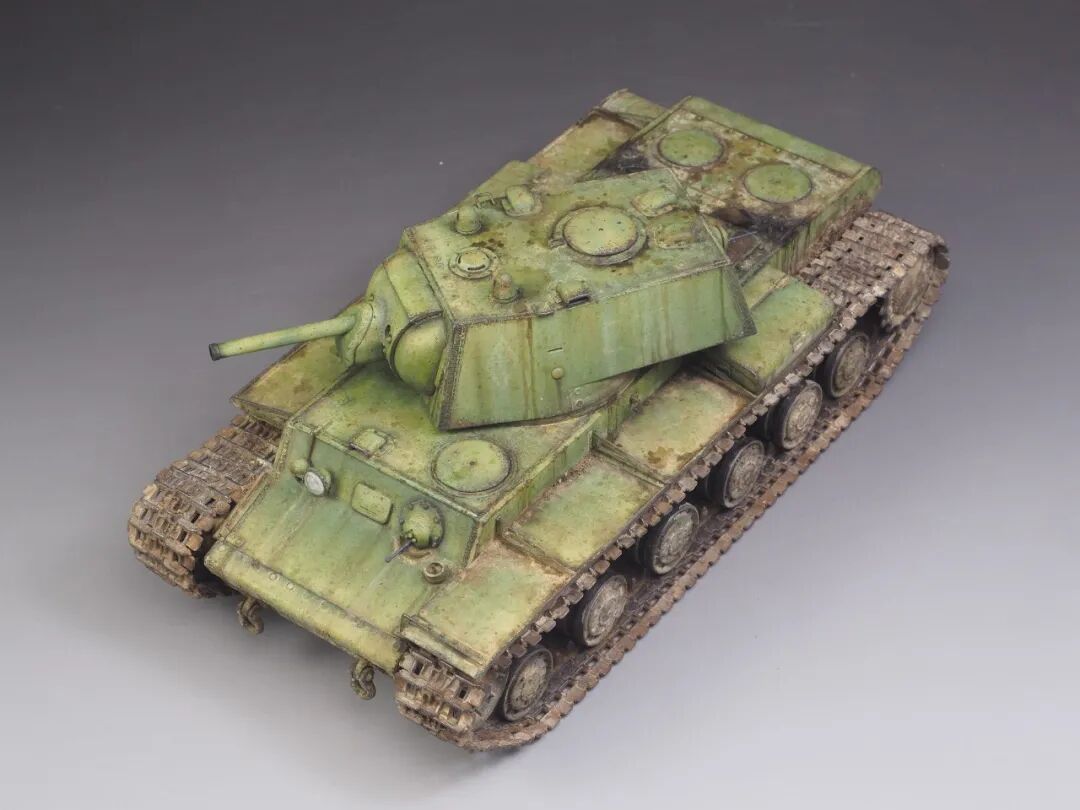 KV-1重是苏联在二战前研发出来的,一直到到1941年德军入侵苏联前一共生产了636辆。其设计的基础是对抗德国人的三号和四号,经战场验证,那会的德国确实是拿这个超级皮厚的坦克没什么办法。