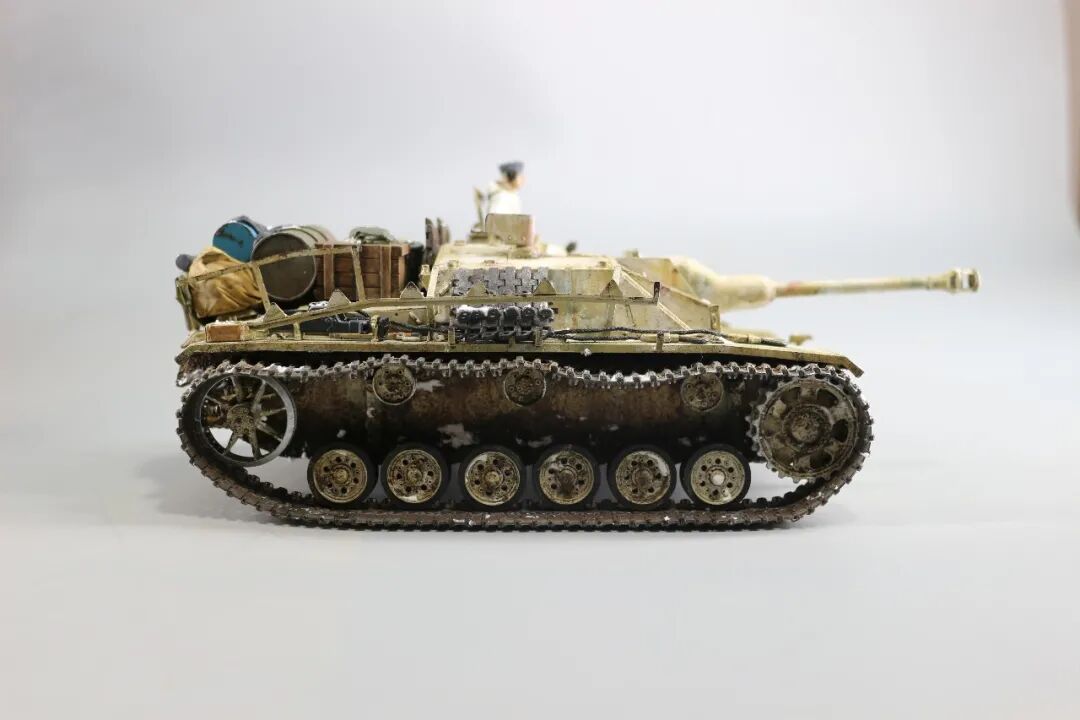 今天分享的G型,是三号突击炮的最后一种型号,直至战争完结,德国一共生产了10500辆三号突击炮,G型有着全新的战斗室和全向的观察窗,还加装了冬季履带,三突子的实力在G型身上依然保留!