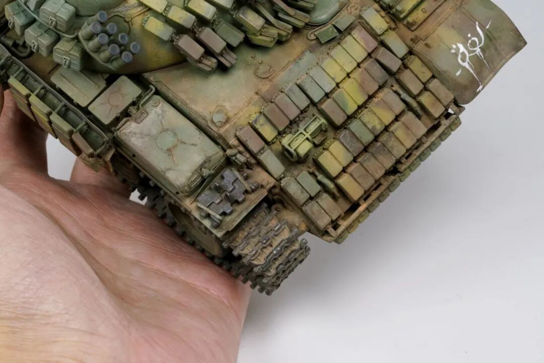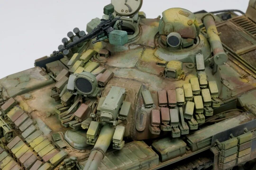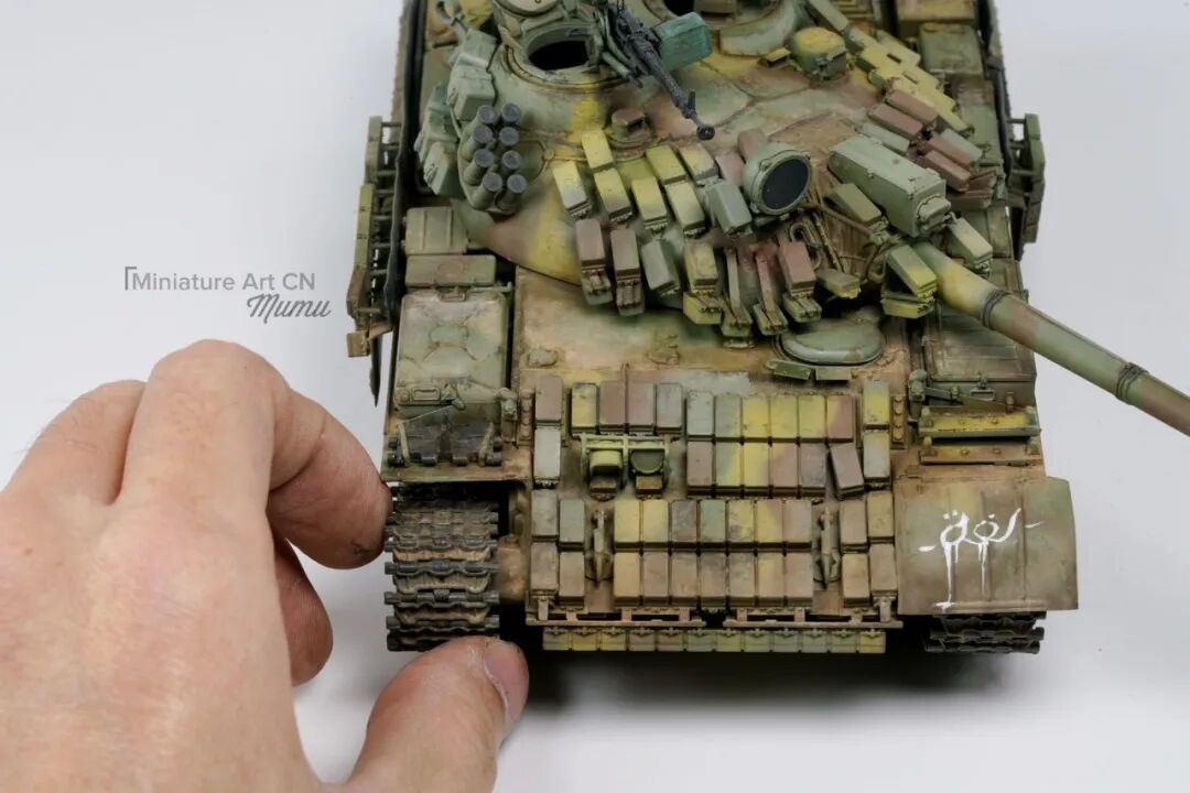 t55amv这种装备,木老师没有选择搞一个华丽的破烂效果,板件的整齐度充分保留,靠着娴熟的旧化手艺把中东坦克的破败感刻画的恰到好处。