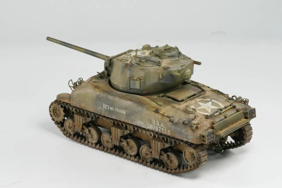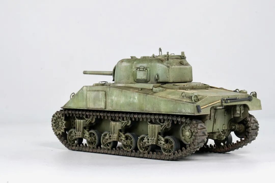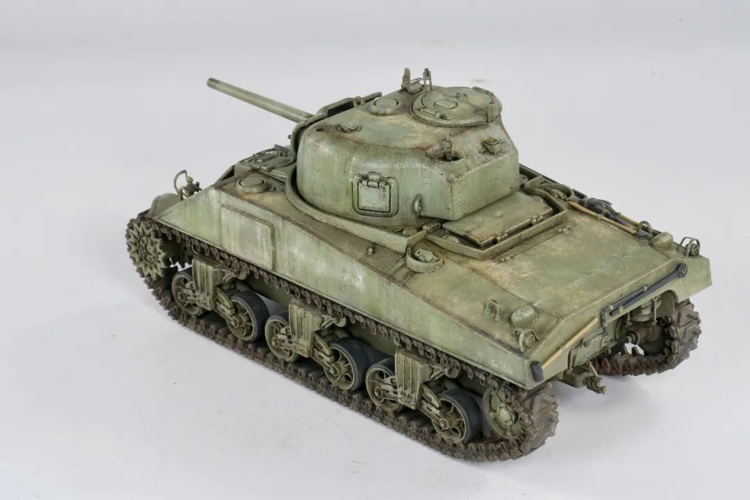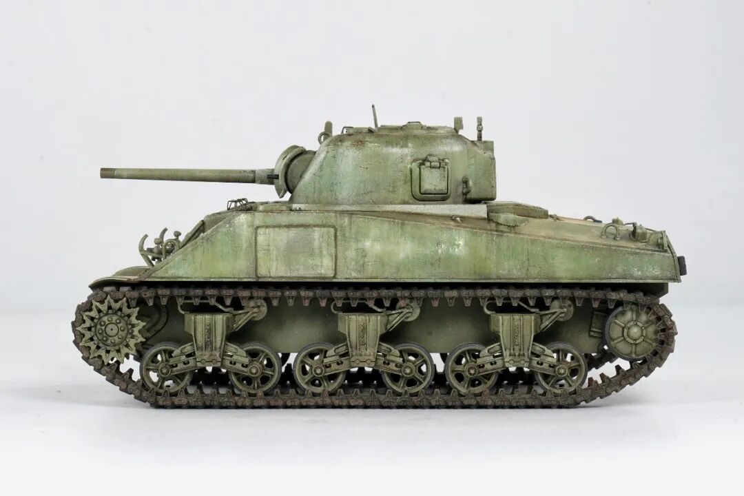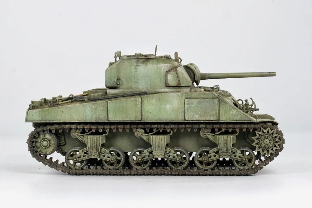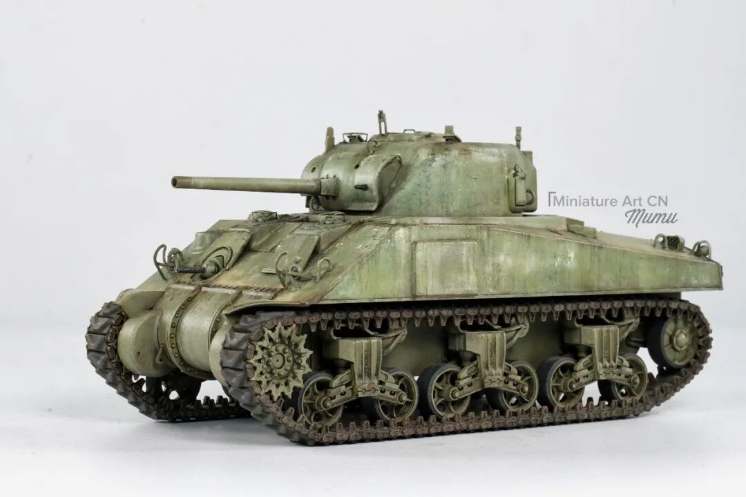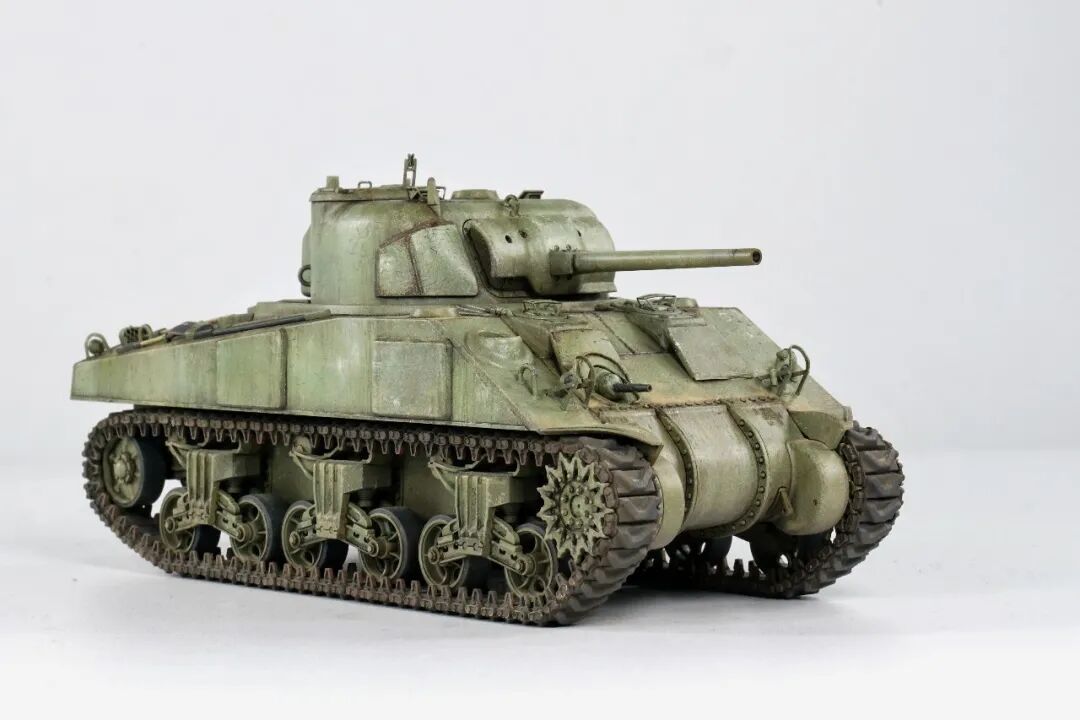 M4中型坦克,是在M3中型坦克的基础上研制的,各种改型的车身、发动机、炮塔、坦克炮、悬挂、履带等都选用不同的装备配置,构成车身的零件有高度的兼容性。谢尔曼坦克是二战中产量最大的坦克之一,其产量达49234辆。